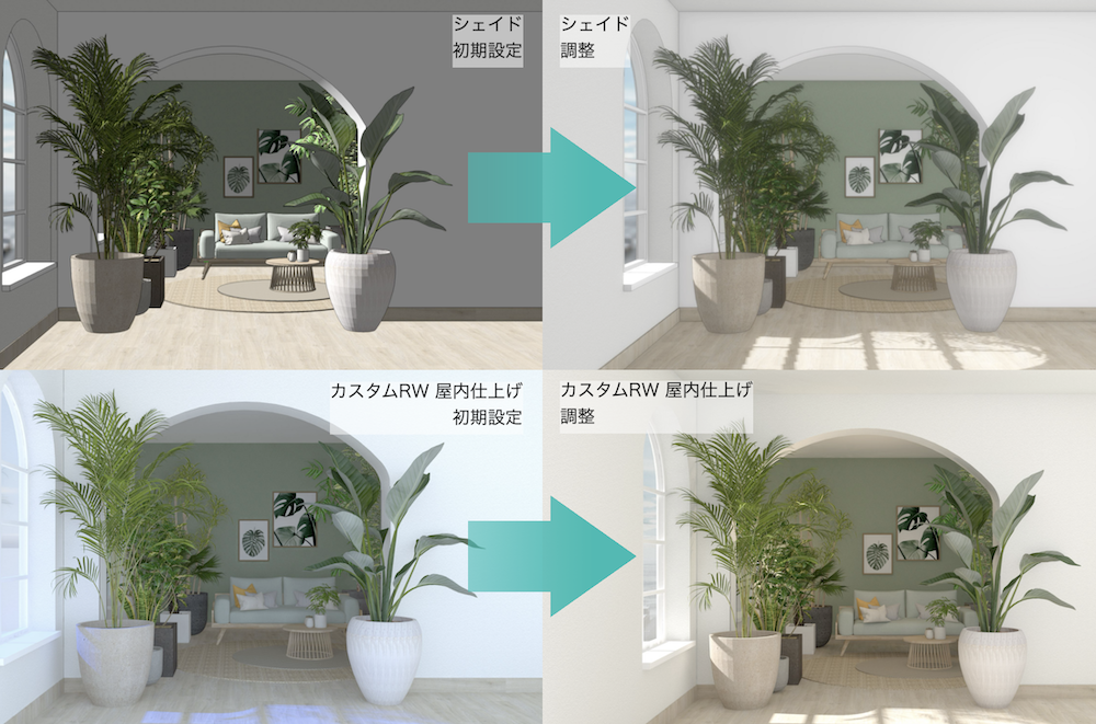 今回のWeb勉強会では、レンダリング結果がすぐに確認できるシェイドレンダリングや、各設定がセットされているRenderworks スタイルにおいて、初期設定の状態から少し変更するだけでそれなりのパースを作成できる方法をご紹介します。