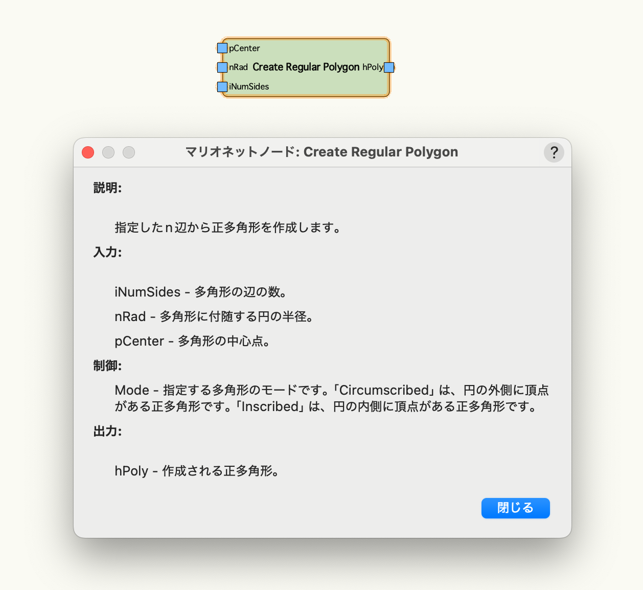 正多角形を作図するRegularPolygonノードを使用して正六角形を作成します。