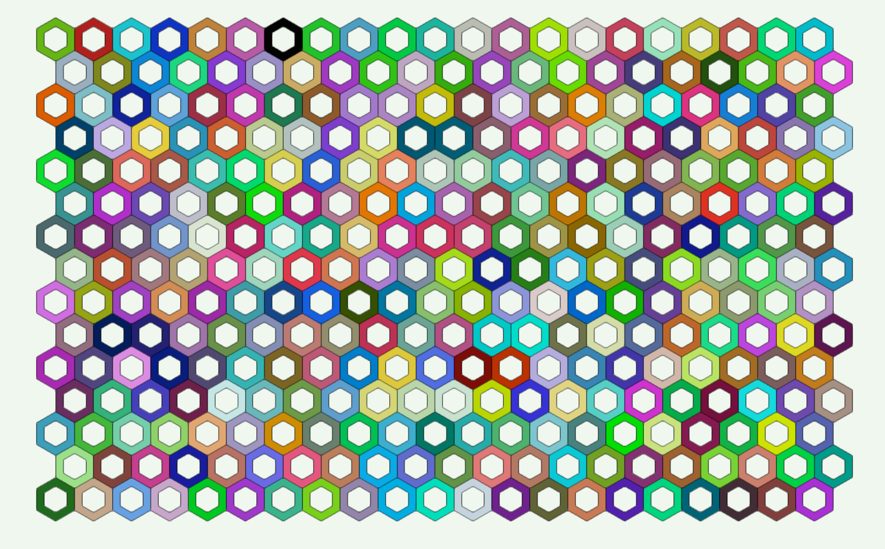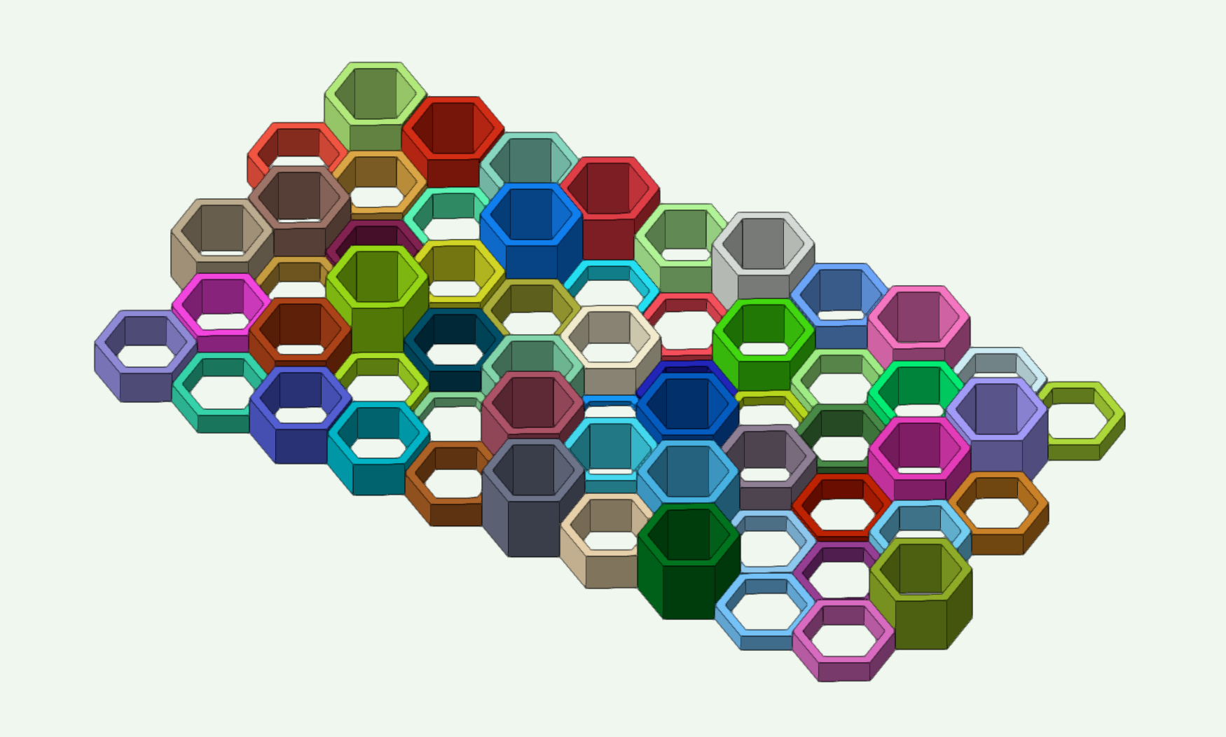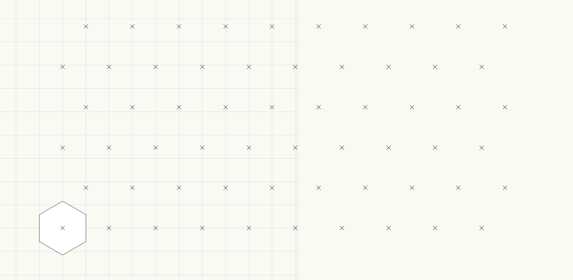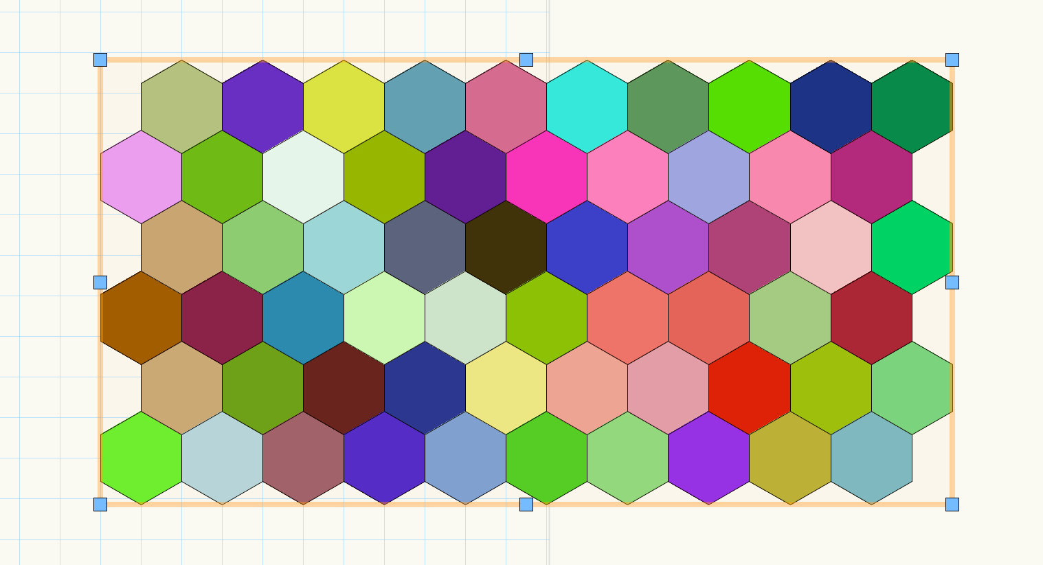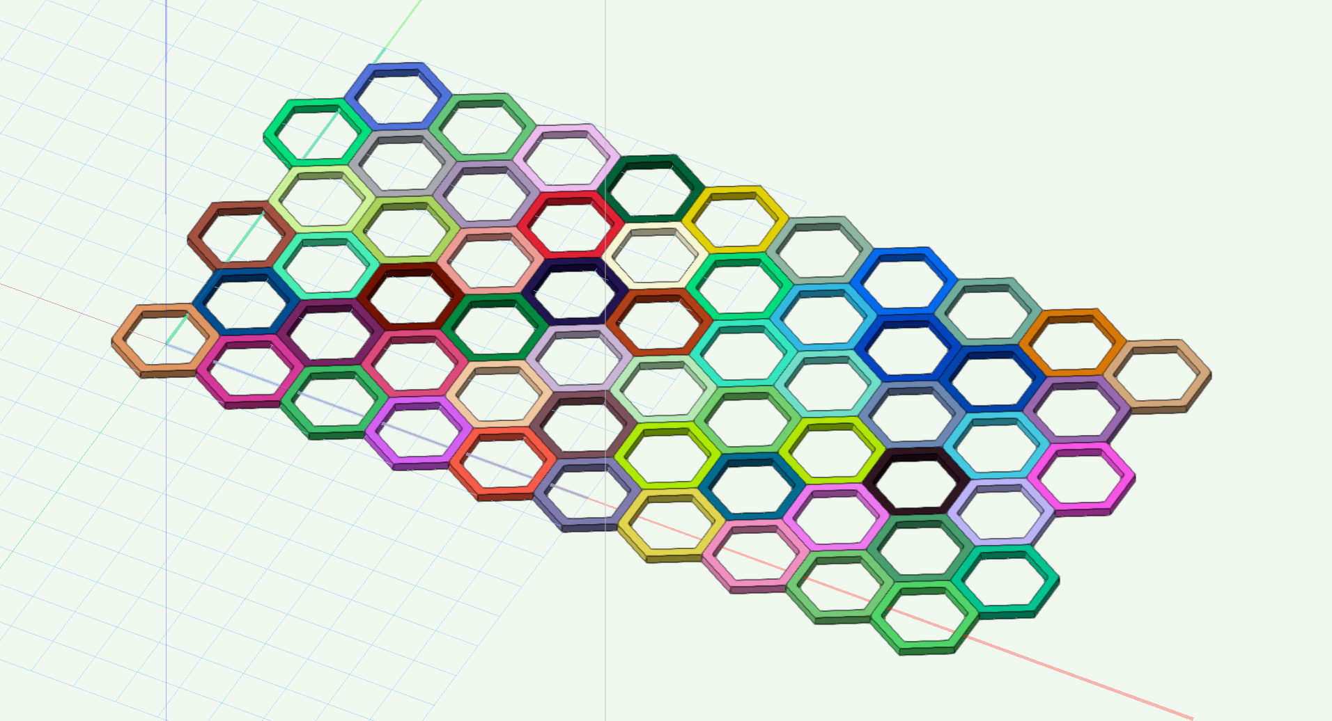 実行すると、グリッドに沿って正六角形が敷き詰められました。