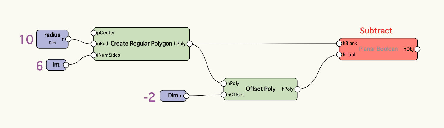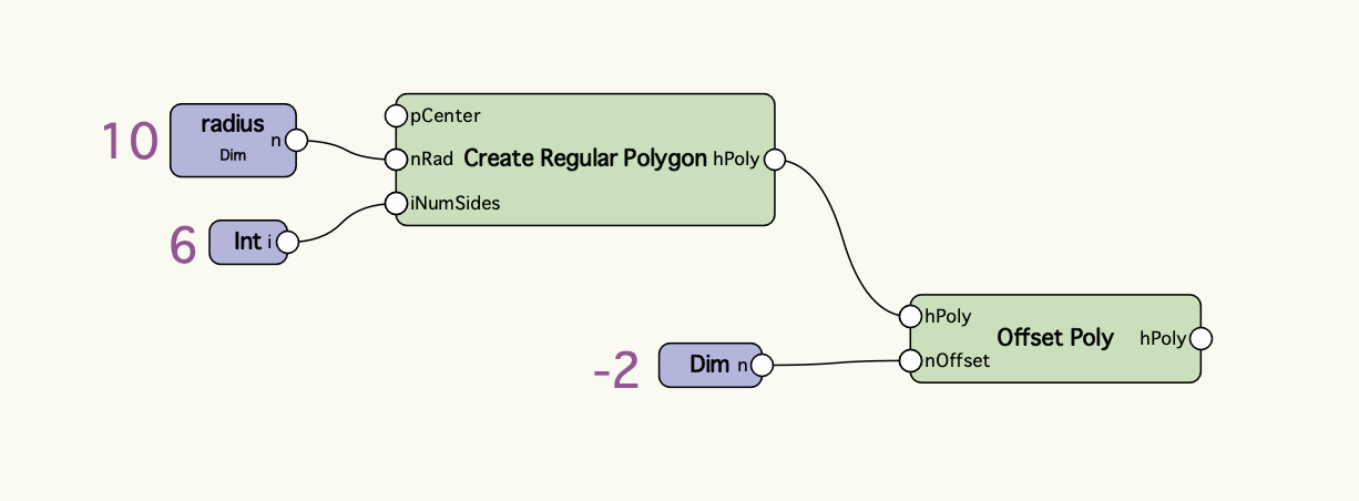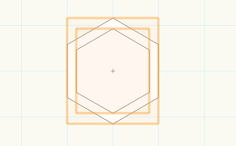 正六角形をオフセットして、切り欠きのための図形を作成します。内側にオフセットする場合はマイナス値を指定します。