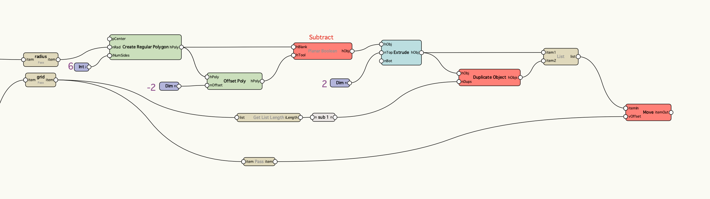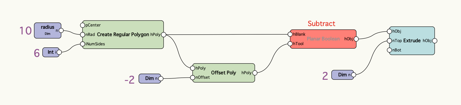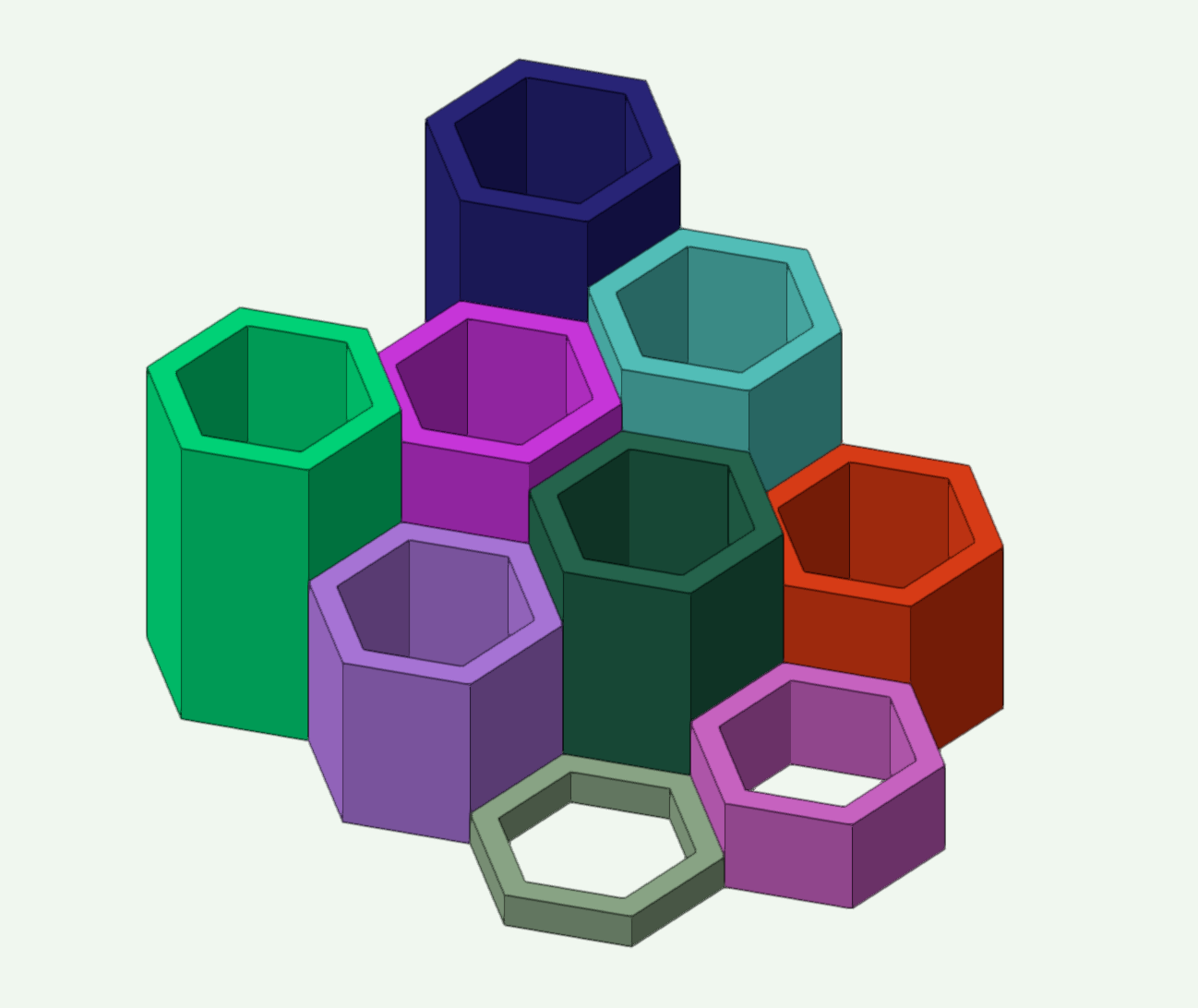 正六角形をくり抜いたあとに高さを与えて、筒状の図形に変換します。