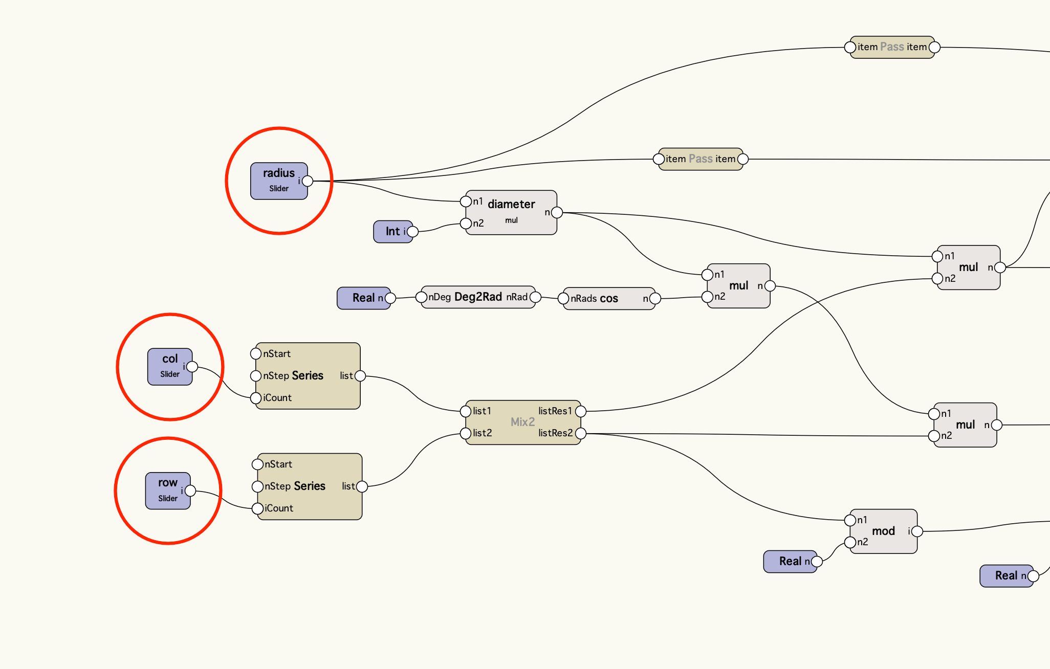 半径、行数、列数、高さのスライダーを変更して、生成されるオブジェクトを確認します。