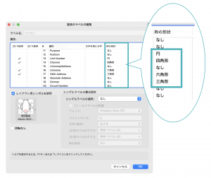 6. 器具ラベルの編集ダイアログの枠の形状にて、追加した形状が選択可能になります。