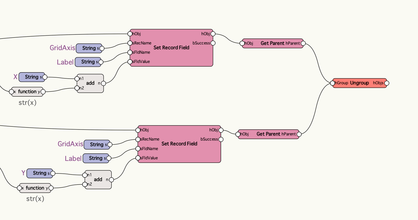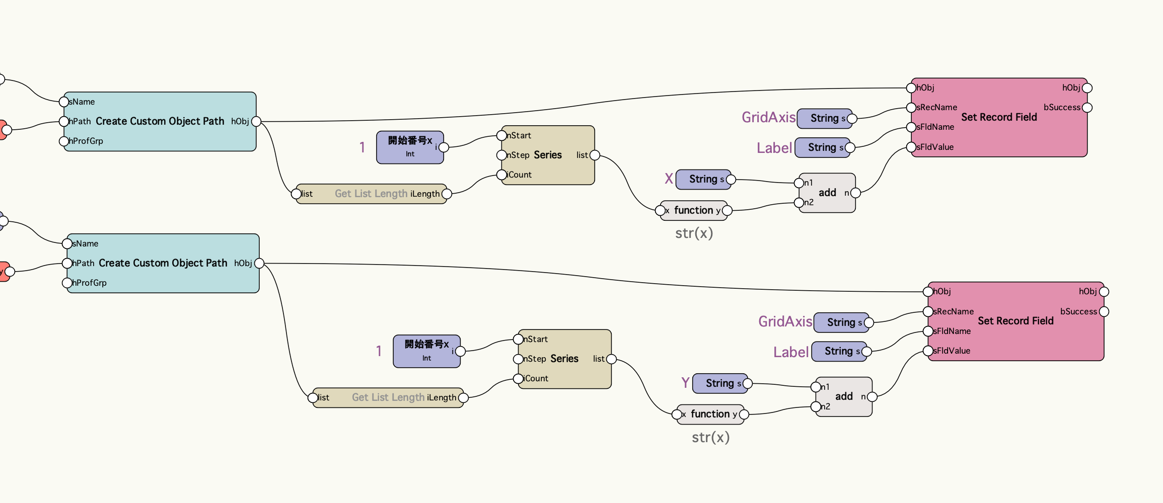 ラベルや水平線の長さなどグリッド線のパラメータを変更する場合はSet Record Fieldノードで設定します。