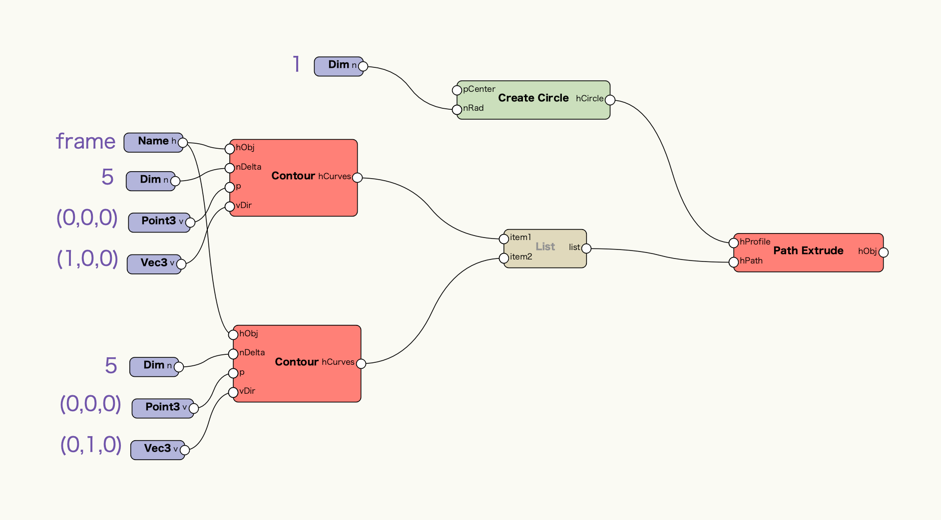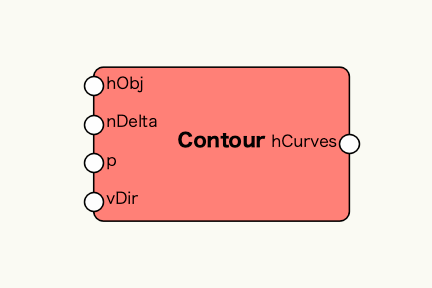 Contourノードは指定した3D図形に対して、等間隔に輪切りにしたNURBS曲線を生成します。