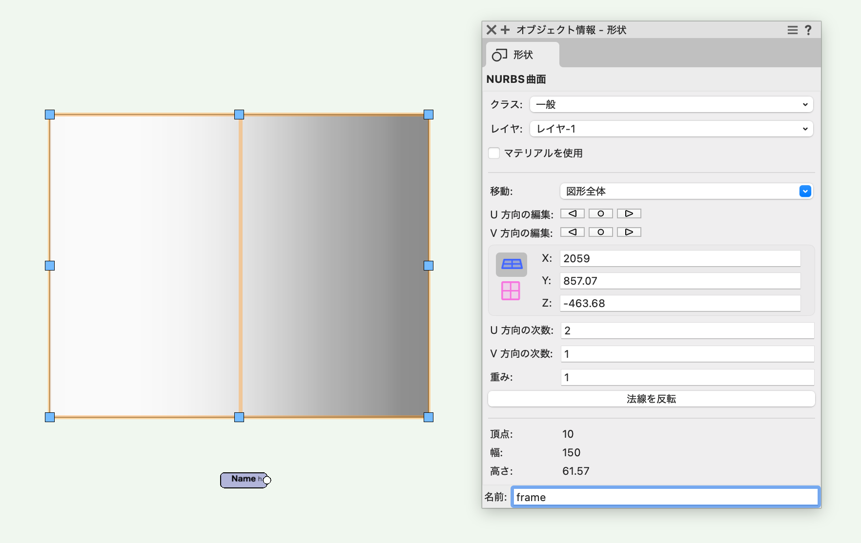 任意の名前を設定したあと、Nameノードを使用してマリオネットから図形を取得する準備します。