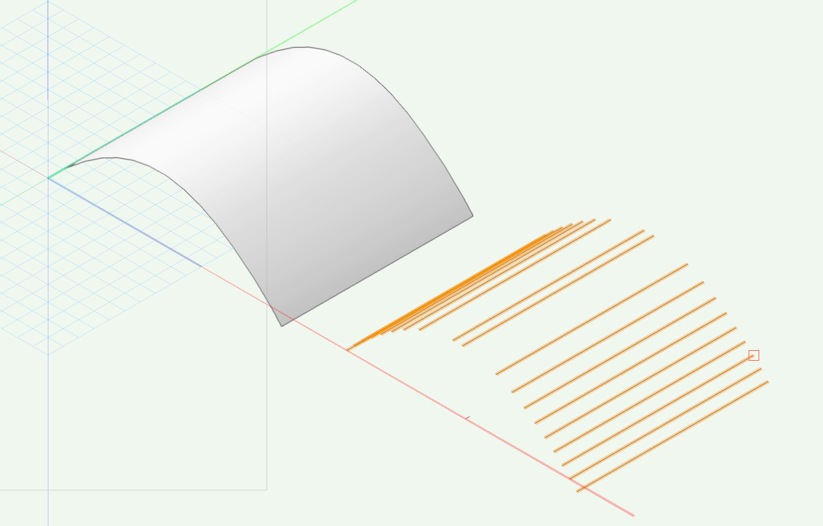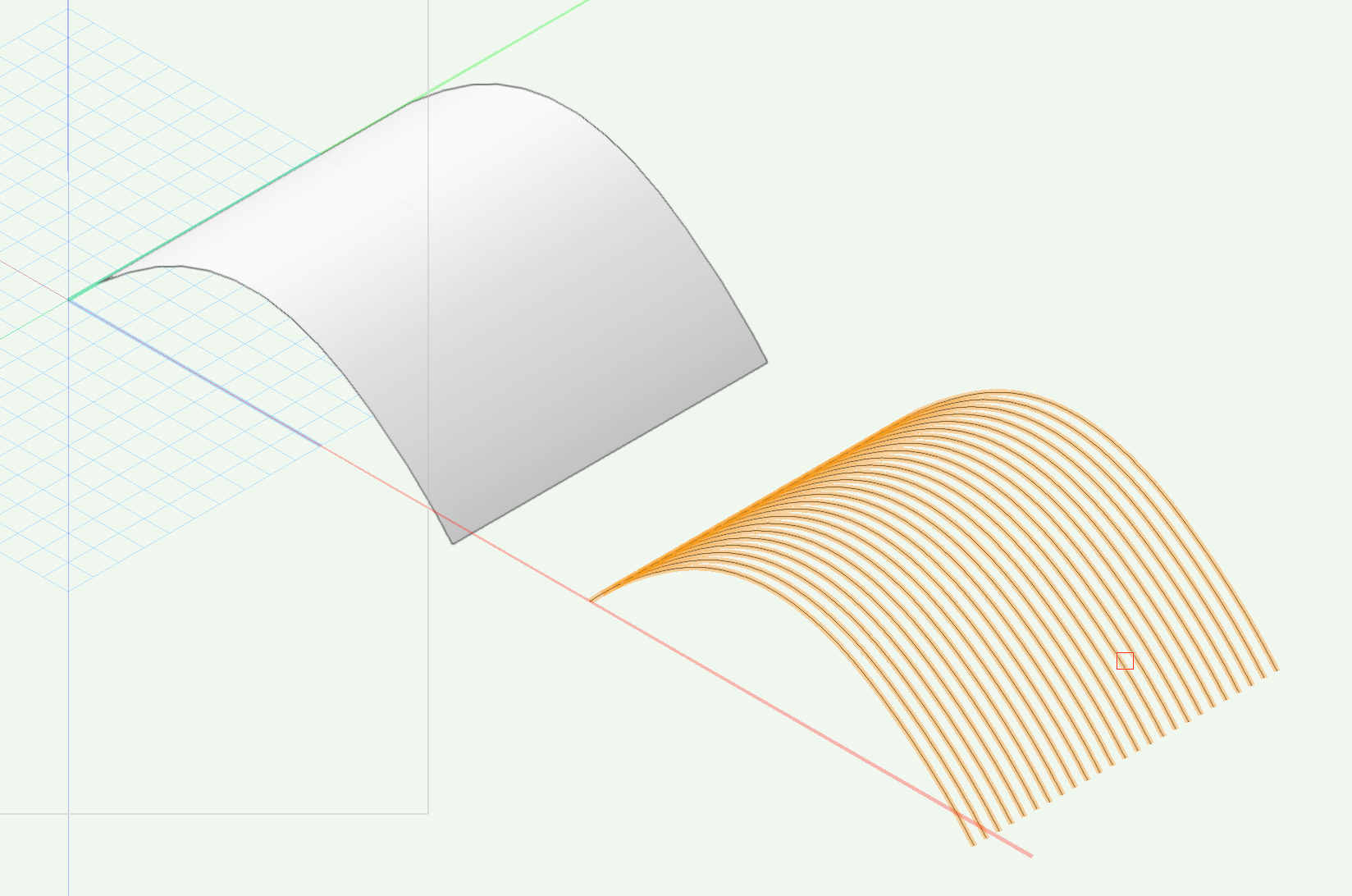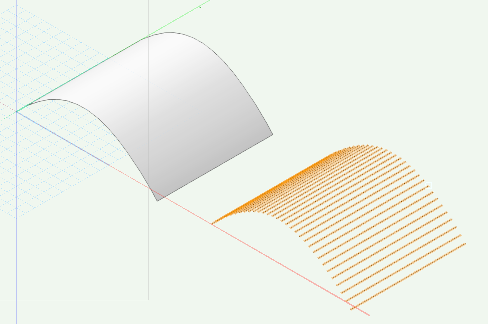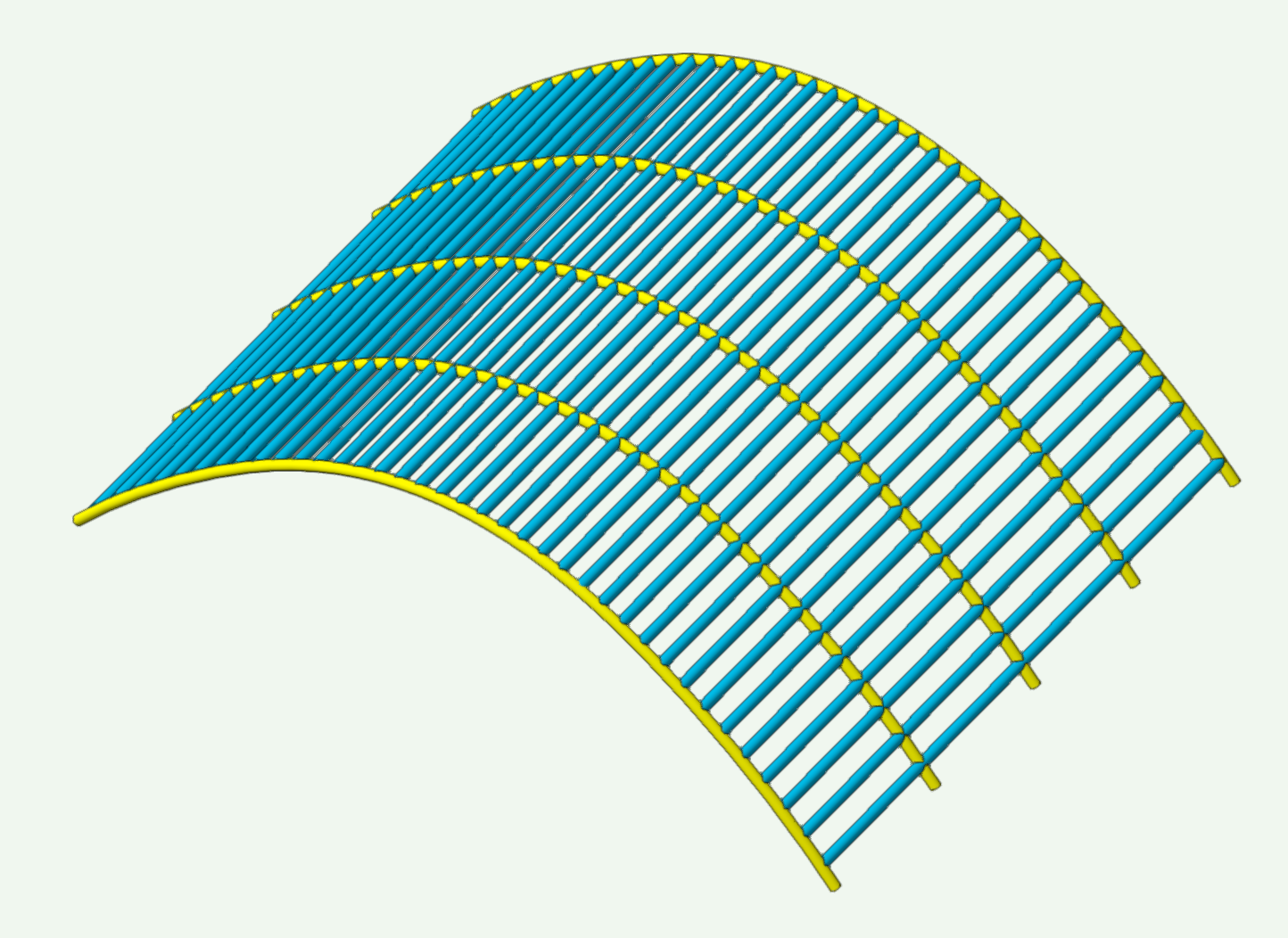 曲面に沿った骨組みのようにパス押し出しが配置されます。