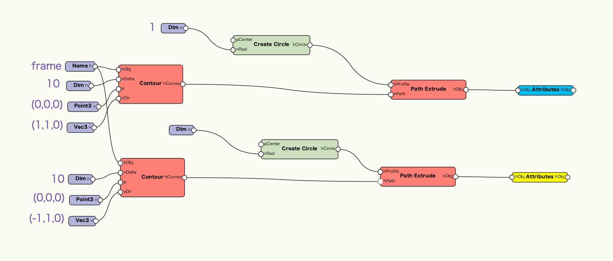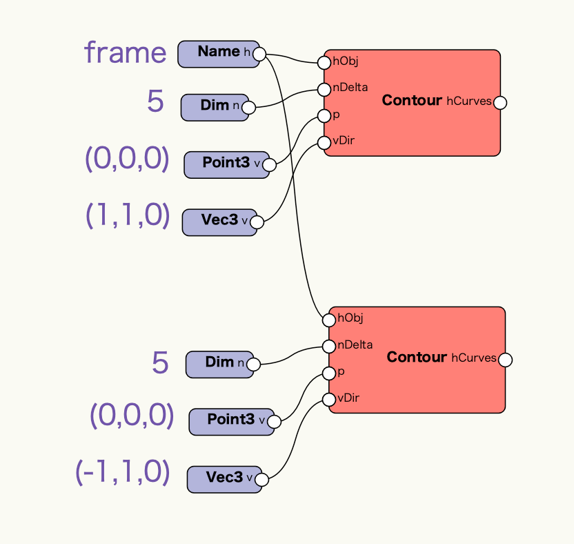 複数方向に輪切りをする場合は、Contourノードを複数使用してそれぞれの方向に輪切りを行います。