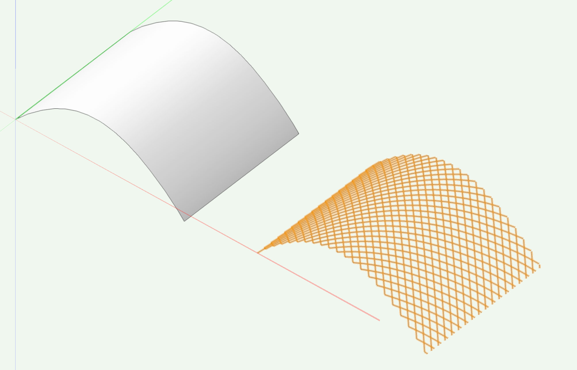 この曲線をパス押し出しに変換することで、元の3D図形の形状に沿った格子状の構造を作成することができます。
