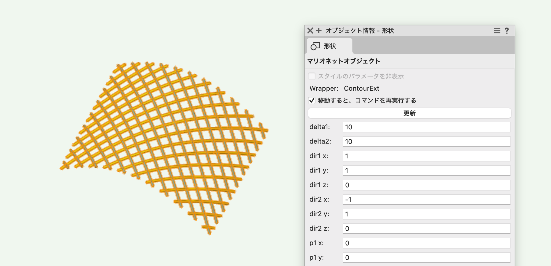 今回はマリオネットを使用して3D図形を輪切りにしたコンターをパス押し出しに変換するプログラムを作成します。