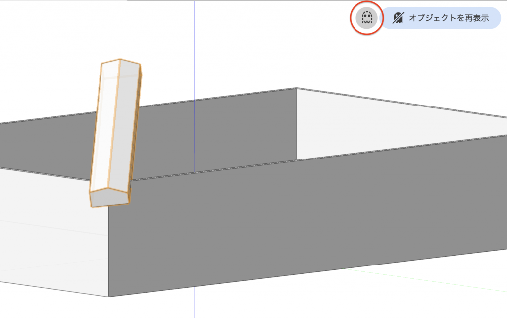 4. 表示設定ツールのオブジェクトモード、非表示モードを選択して、3. で作成した図形をクリックし一旦非表示にします。