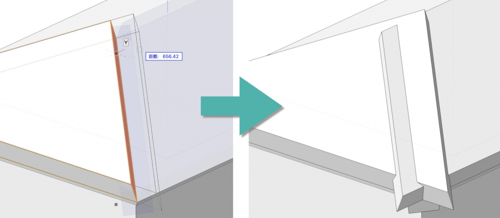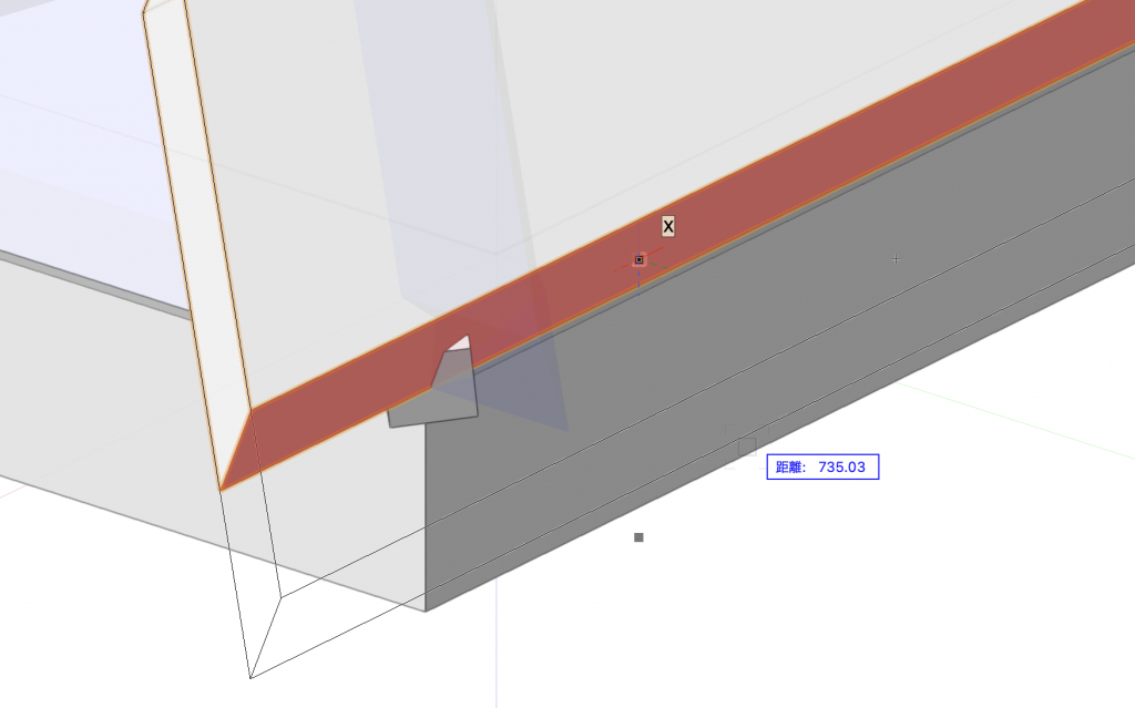 8. この後削り取りをするため、3. で作成した図形は完全に覆われる必要があります。軒方向も適宜伸ばしておいてください。