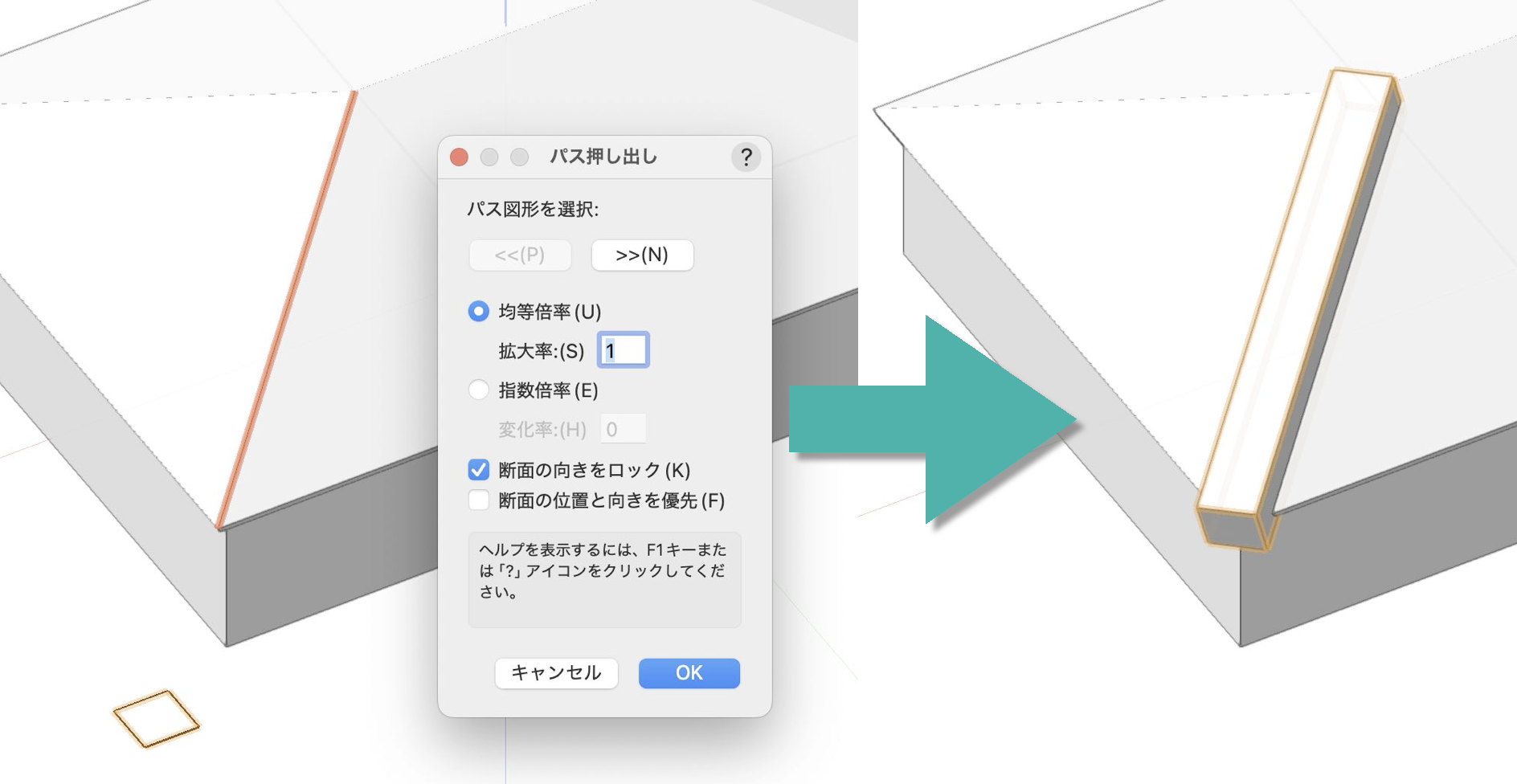 隅棟に沿った押し出し図形を作成します。