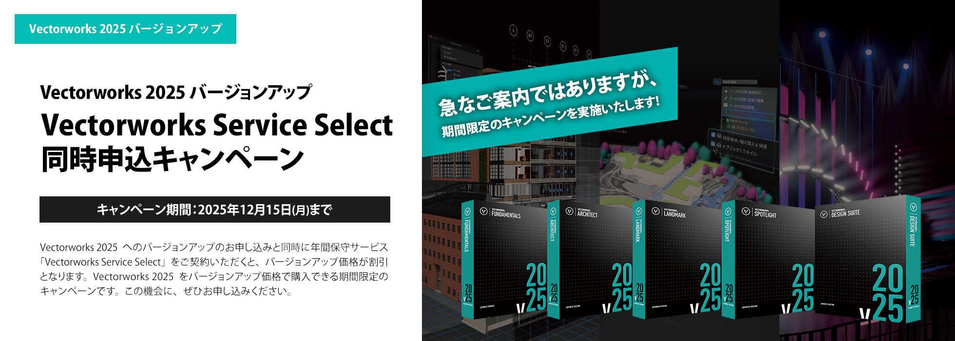 年間保守サービス Vectorworks Service Selectの無償バンドルキャンペーンが始まりました!